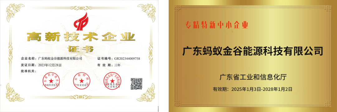 螞蟻金谷自研了客戶營銷管理系統(tǒng)、電量申報管理系統(tǒng)、需求響應(yīng)申報和分析系統(tǒng)、充電站運營平臺、光伏發(fā)電監(jiān)測系統(tǒng)、電池儲能智慧管理系統(tǒng)、負荷集成和虛擬電廠運營平臺等,擁有國家發(fā)明專利與實用專利近20余項,榮獲國家規(guī)上企業(yè)、國家高新技術(shù)企業(yè)、國家科技型中小企業(yè)、廣東省專精特新企業(yè)、廣東省創(chuàng)新型中小企業(yè)、國家虛擬電廠協(xié)會理事單位、國家光儲充技術(shù)標準企業(yè)等榮譽稱號。選擇螞蟻,作您最可靠的智慧能源服務(wù)商!